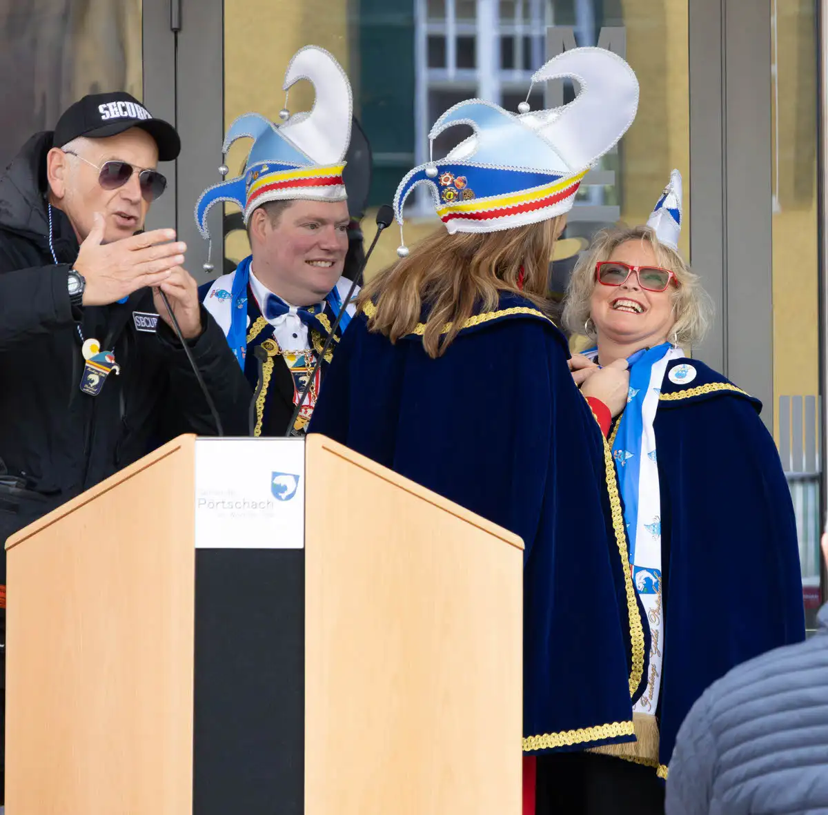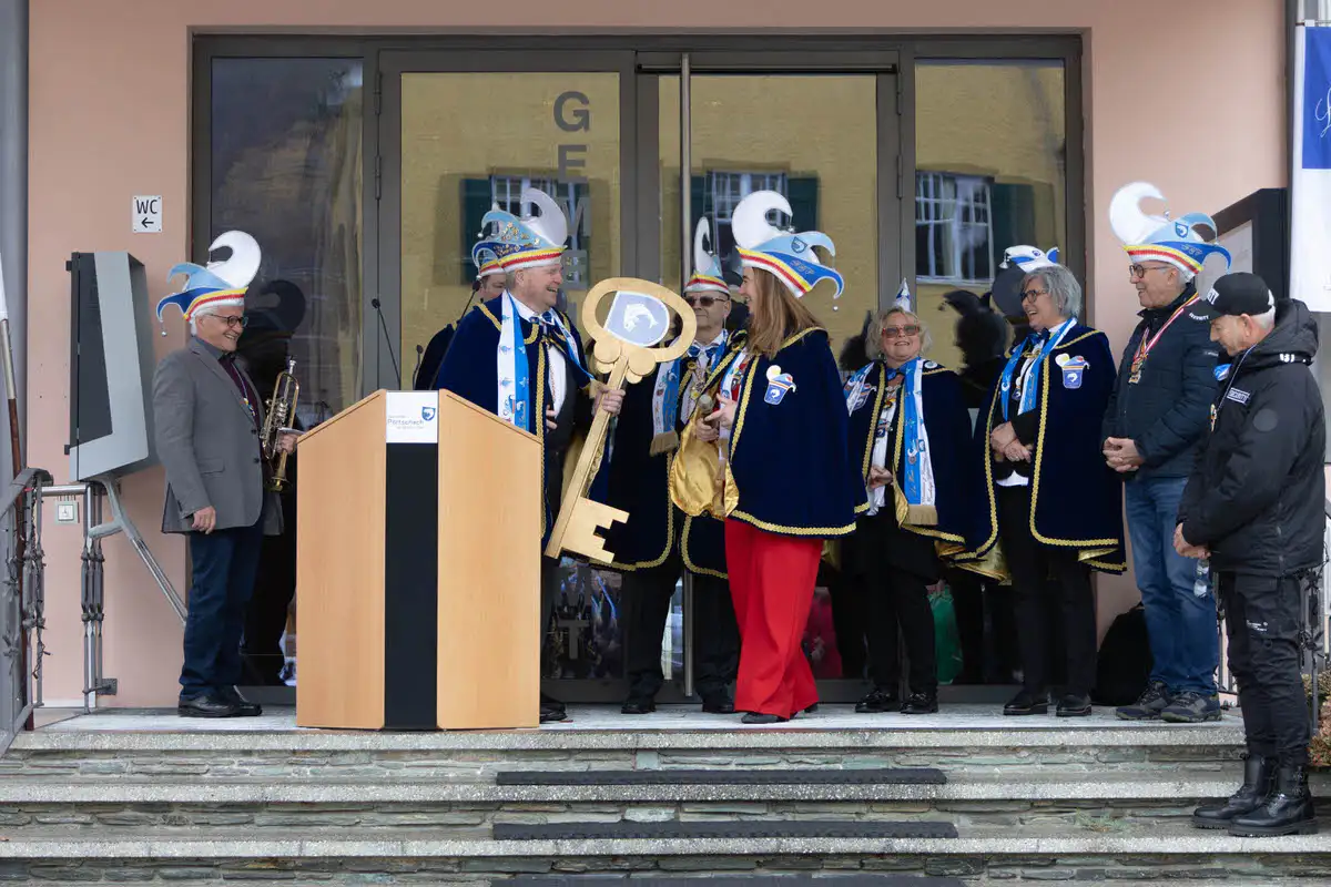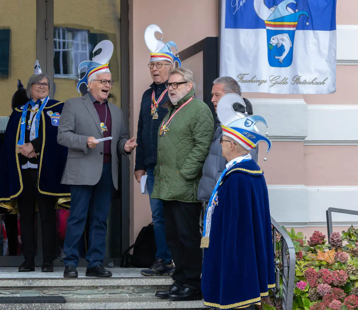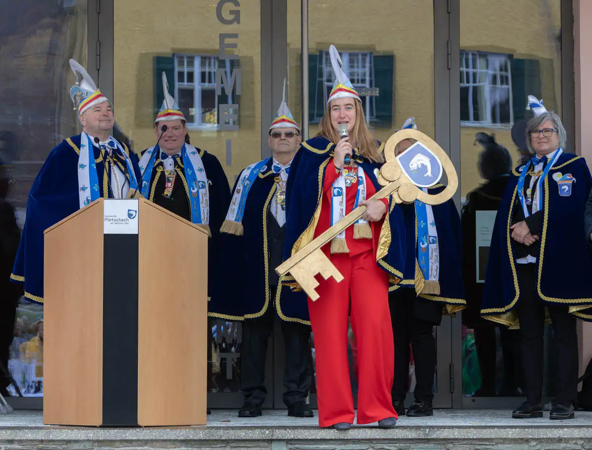 Mit der feierlichen Übergabe des Gemeindeschlüssels übernimmt die Faschingsgilde Pörtschach traditionell die Gemeinderegentschaft für die Dauer der närrischen Zeit.