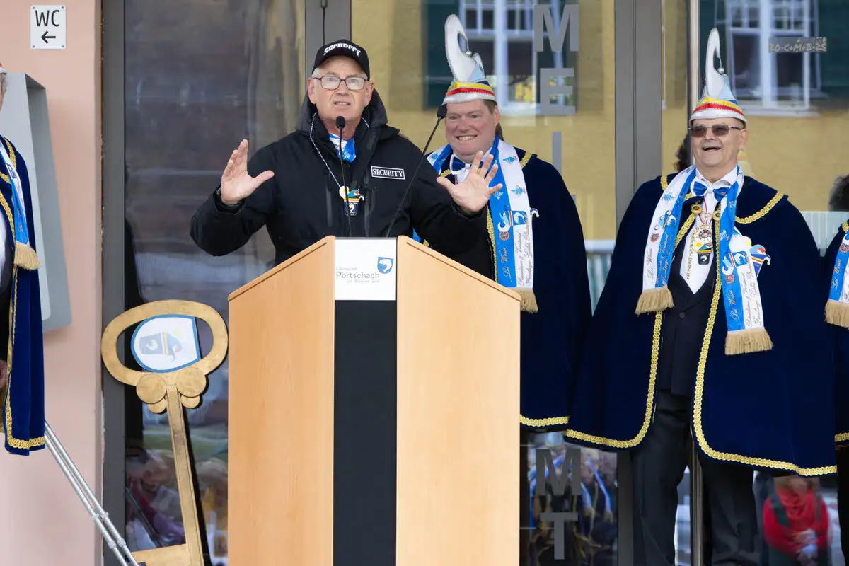 Ein besonderes Augenmerk lag auf der Übergabe des Gemeindeschlüssels durch Frau Bürgermeister Mag. Häusl-Benz. Da der Präsident der Faschingsgilde Pörtschach, DI Kurt Hainschitz, aus gesundheitlichen Gründen verhindert war, wurde er in würdiger Weise durch Obmann Helmut Saurer vertreten. Frau Bürgermeisterin Mag. Häusl-Benz übergab den Schlüssel mit den besten Wünschen für eine humorvolle und friedliche Regentschaft an Obmann Saurer. Im Anschluss daran verlas der Stellvertreter des Präsidenten, Josef Müller, die Faschingsproklamation, mit der die Gilde offiziell die Macht im Gemeindeamt übernahm.